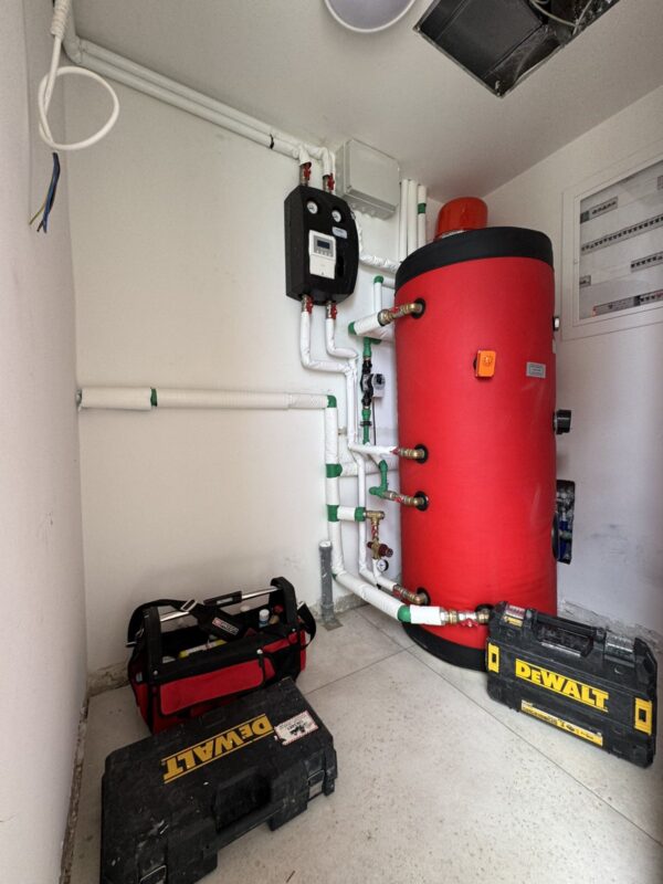 Συνδέουμε τον λέβητα με τα καλοριφέρ ή το σύστημα ενδοδαπέδιας θέρμανσης, καθώς και με την παροχή ζεστού νερού χρήσης. Τοποθετούμε όλα τα απαραίτητα εξαρτήματα (κυκλοφορητές, δοχεία διαστολής, βαλβίδες ασφαλείας) για την ομαλή λειτουργία του υδραυλικού κυκλώματος.